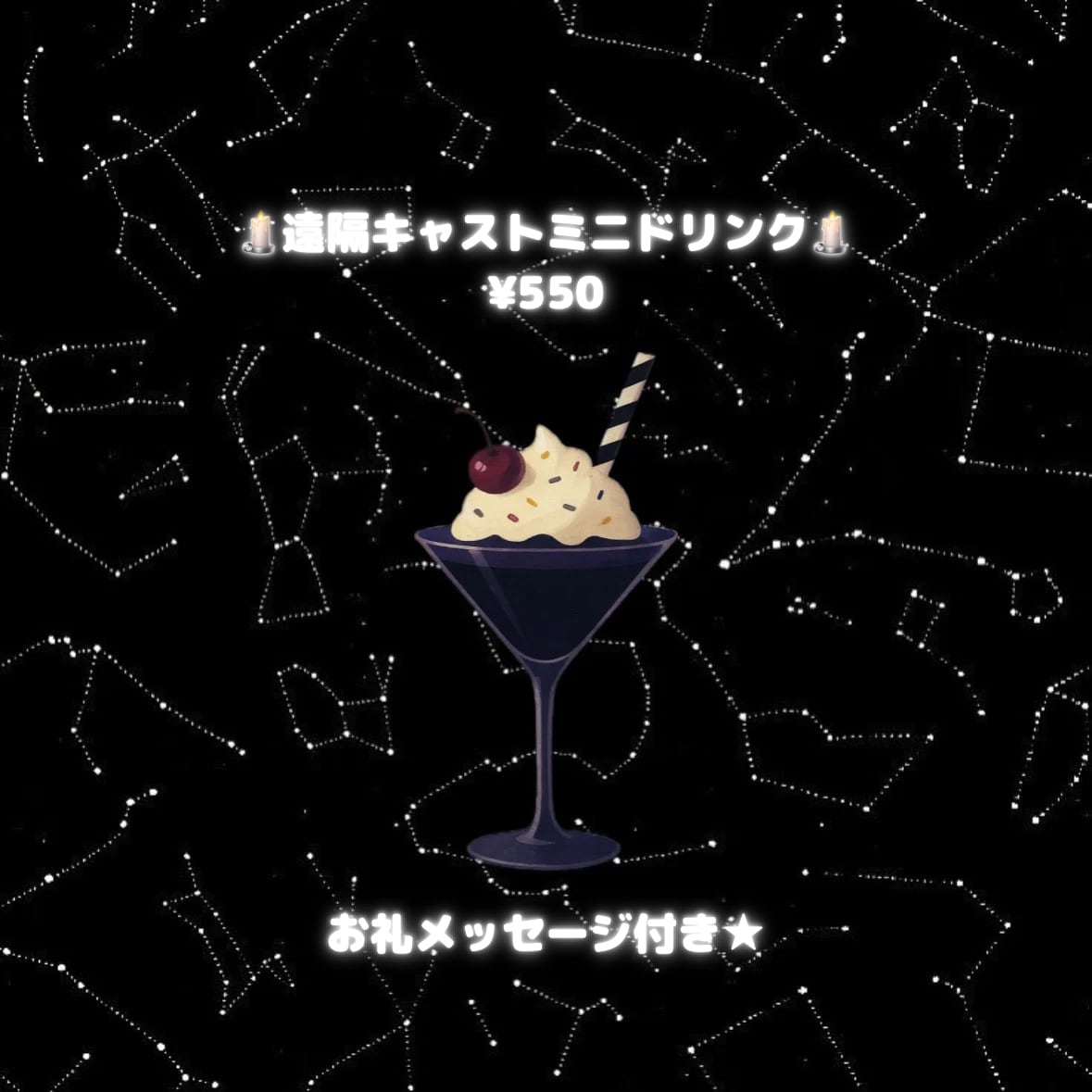 普通のキャストドリンクよりも少し小さめのご褒美ドリンクです!(お礼メッセージ付き)
